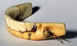You may have heard that the first president of the United States, George Washington, wore dentures made of wood. You probably also learned that the future leader chopped down a coveted cherry tree when he was a boy, and – While both of these are wonderful tales involving George Washington and wood, neither story is actually rooted in fact. Indeed, the cherry tree story was fabricated by author Mason Locke Weems, in an 1800 biography of Washington. It is not evident how the far-reaching but fictitious wooden dentures legend originated. George Washington did wear dentures, but contrary to popular belief, they were not made of wood (cherry or otherwise). According to the Associated Press, a team of researchers performed laser scans on a set of Washington's dentures in 2005 at the National Museum of Dentistry in Baltimore, and identified their contents as ivory, gold, lead, and human teeth. Washington suffered from painful dental problems throughout his adult life, resulting in the loss of all his teeth but one – reportedly a lower left bicuspid – at the time of his inauguration at age 57. Over time he was fitted with several sets of dentures, most by renowned denture-maker John Greenwood. Dental technology and oral health have come a long way since the American Revolution. Were our first president around today, he likely would have avoided dentures. Here are some tips for those would-be Washingtons out there on how to keep your natural teeth: